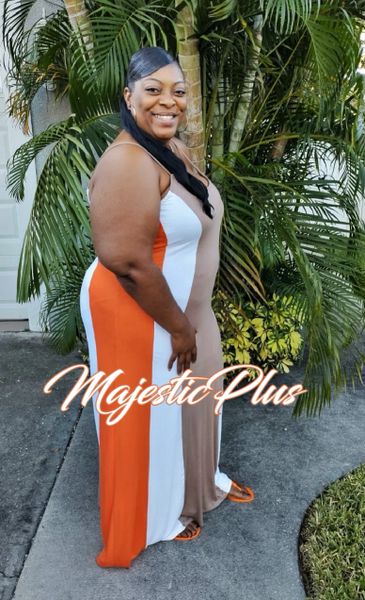 PLUS SIZE MOCHA ORANGE COLOR BLOCK MAXI DRESS Majestic Plus