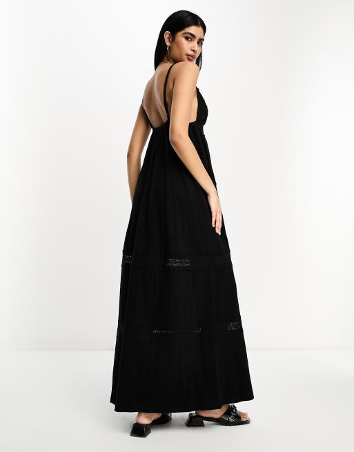 ASOS DESIGN crochet detail strappy tiered maxi dress in black