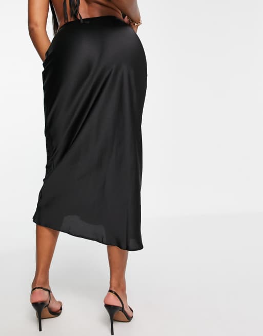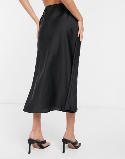 ASOS DESIGN satin bias midi skirt in black ASOS