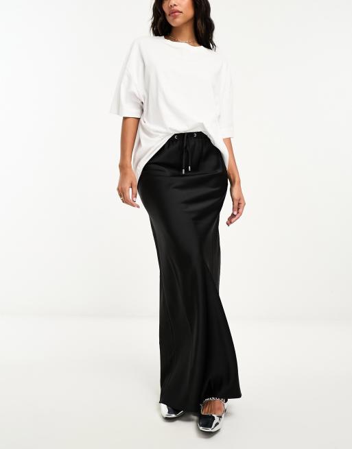 ASOS DESIGN satin bias maxi skirt with tie waist in black