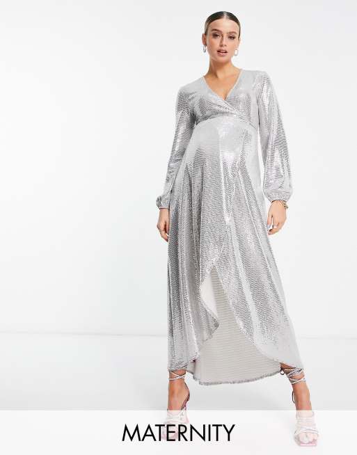 Silver clearance maternity dress, Women s Maternity Metallic Ruched Cowl Detail Midaxi Dress Boohoo UK clearance