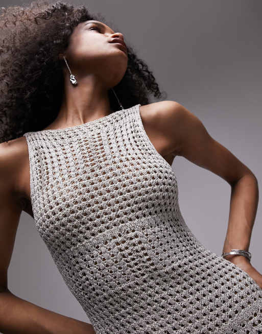 Silver clearance knit dress, Topshop knitted square neck midi dress in silver ASOS clearance