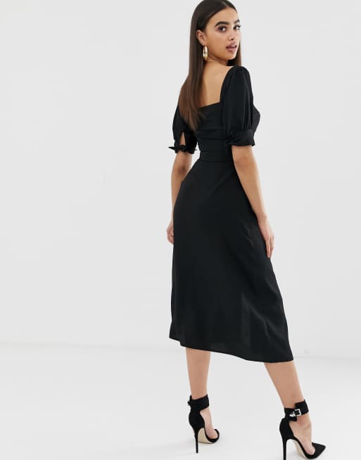 Miss Selfridge puff sleeve rib midi dress in black ASOS
