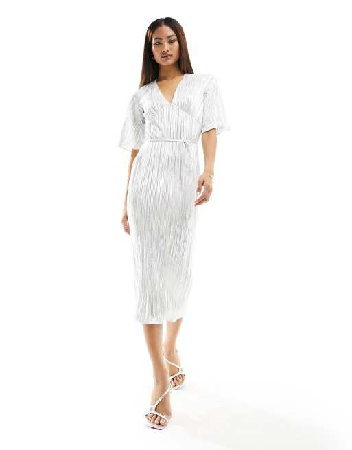 Silver clearance plisse dress, Plisse V Neck Dress Apricot Clothing clearance