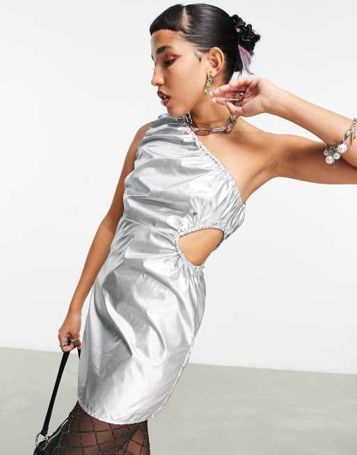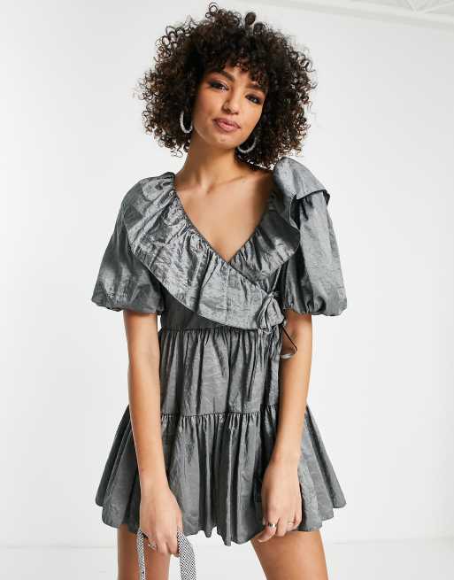 Silver clearance taffeta dress, Metallic Ribbon Detailed Taffeta Gown clearance