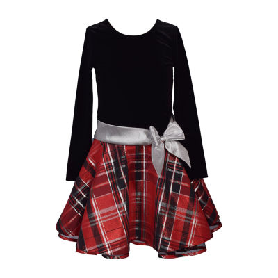 Bonnie Jean Little Girls 2T 6X Long Sleeve Velvet Plaid Taffeta