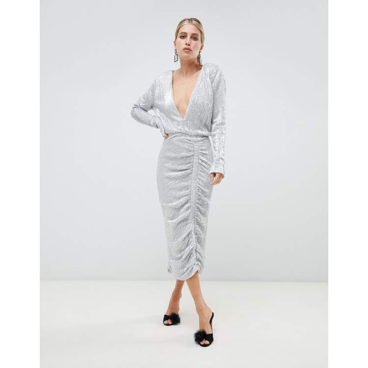 Lavish Alice sequin embellished midi dress in silver iridescent