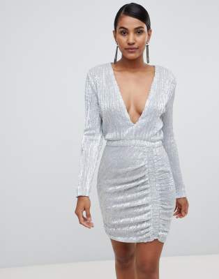 Lavish alice sequin embellished clearance mini dress in silver iridescent, Lavish Alice sliver dress Depop clearance