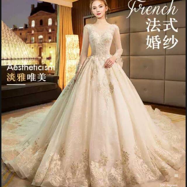Gown pengantin clearance, Wedding Dress Design Terbaru 2021 kualitas tinggi ilusi lengan clearance