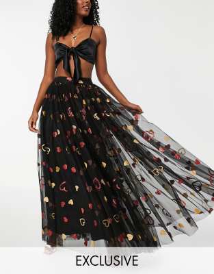 Lace Beads Exclusive Statement Tulle Maxi Skirt In Black And Red Heart ModeSens