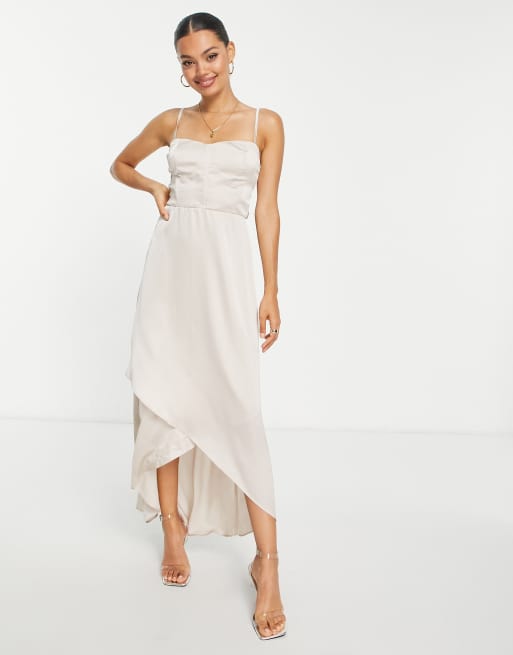 TFNC Petite Bridesmaid satin cami dress in mink ASOS