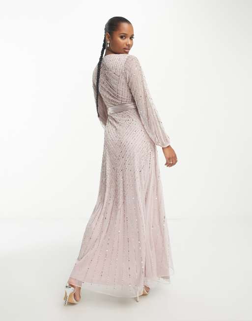 Frock and Frill Petite Bridesmaid wrap maxi dress in taupe