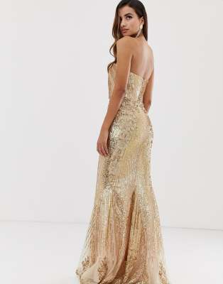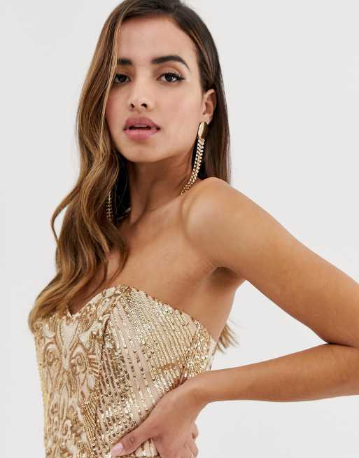 Goddiva bandeau sequin embellished clearance maxi dress in gold