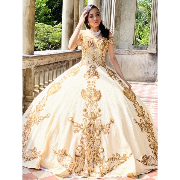 DEBUTANT SUPER ELEGANT GOLD BALL GOWN Shopee Philippines
