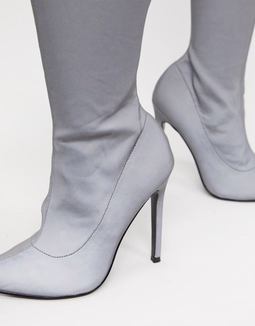 ASOS DESIGN Kendra stiletto thigh high boots in reflective