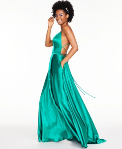 Betsy Adam Satin Strappy back Gown In Emerald Green ModeSens