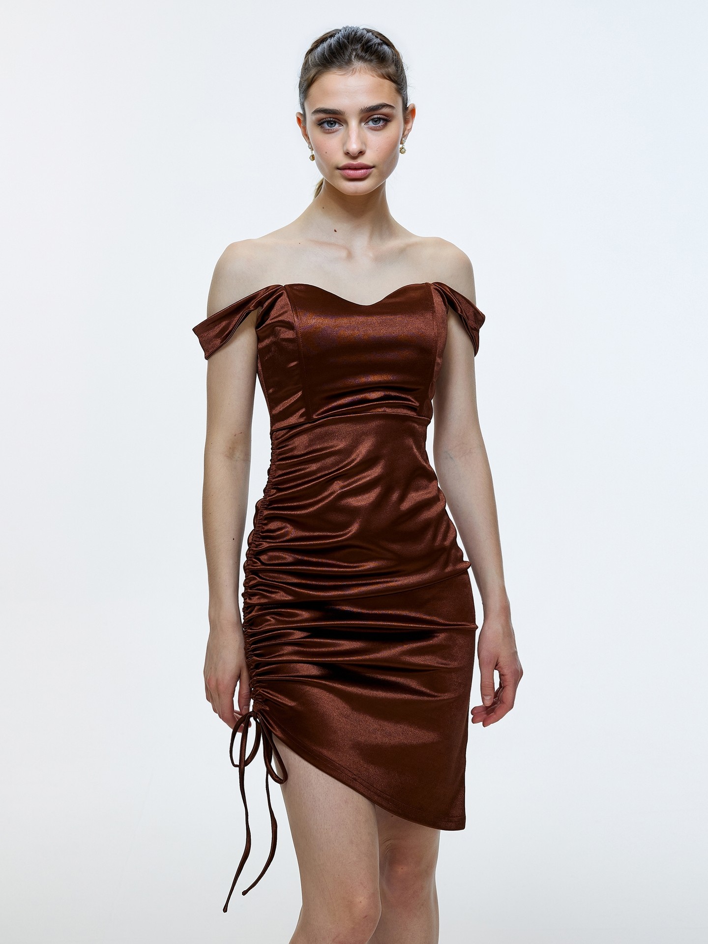 Drawstring clearance satin dress, FREE SHIPPING Women Backless Sides Lace Up Drawstring Ruched Satin clearance