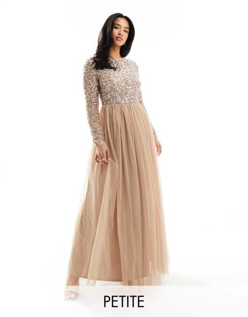 Maya Petite Bridesmaid long sleeve maxi dress with delicate sequin