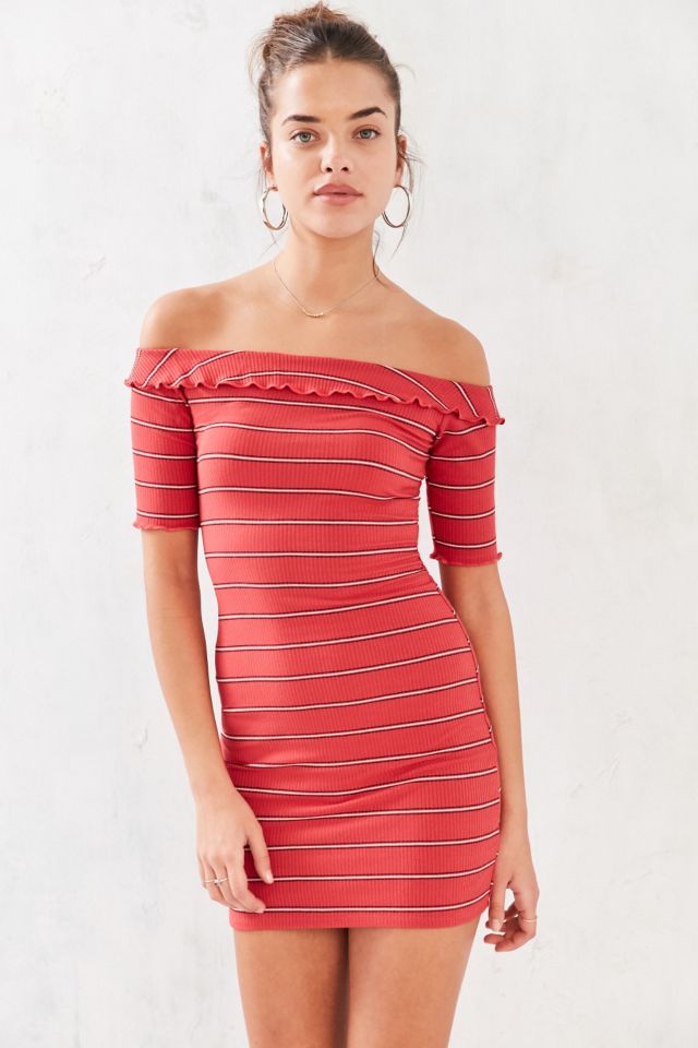 Senorita Off Shoulder Lettuce Edge Ruched Knee Length Dress Hot