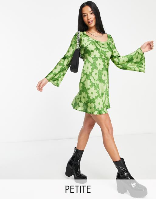 Topshop Petite bell sleeve mini dress in geo daisy print