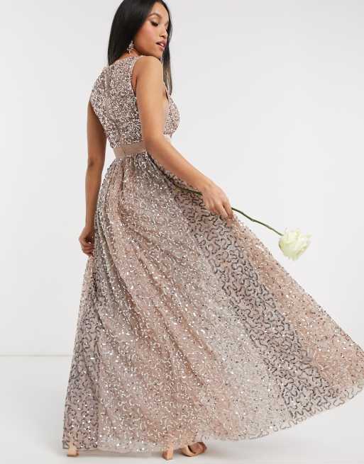 Maya all over contrast tonal delicate sequin dress taupe blush