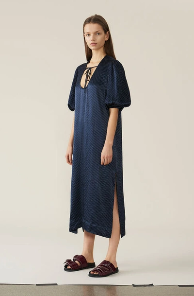 Ganni heavy satin clearance maxi dress, GANNI Midnight blue Women s Midi Dress YOOX clearance