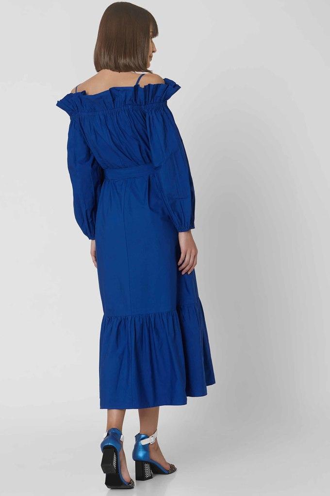 Buy VERO MODA Blue Solid Off Shoulder Cotton Womens Slim Fit Dress