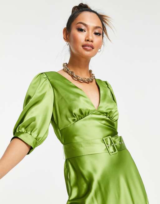 Belted clearance satin dress, Friends Like These Blue Belted Satin Wrap Midi Dress clearance