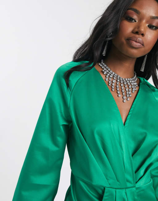 Missguided jacquard satin cami dress with ruched sides in emerald
