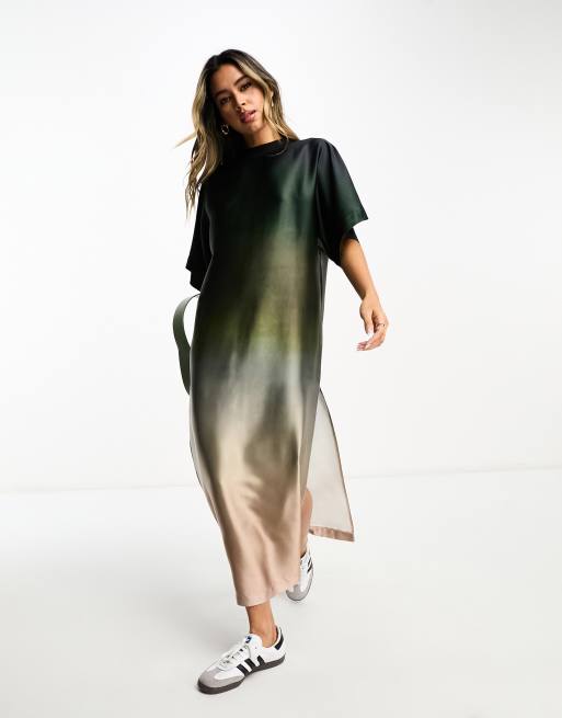 ASOS DESIGN satin oversized midi tshirt dress in khaki ombre ASOS