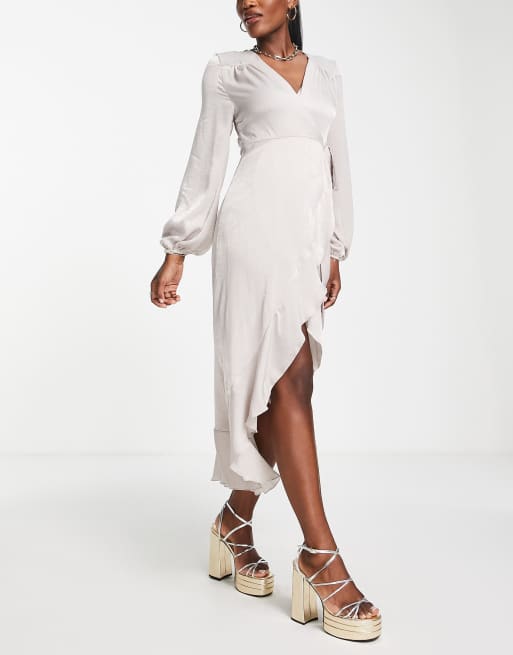 Grey satin wrap clearance dress, Sage Satin Wrap Dress Hijabimama clearance