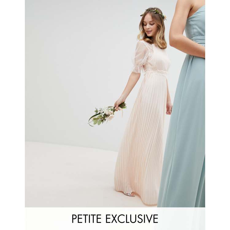 TFNC Petite Pleated Maxi Bridesmaid Dress With Spot Mesh Frill