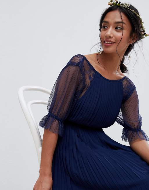 TFNC Petite Pleated Midi Bridesmaid Dress With Spot Mesh Frill