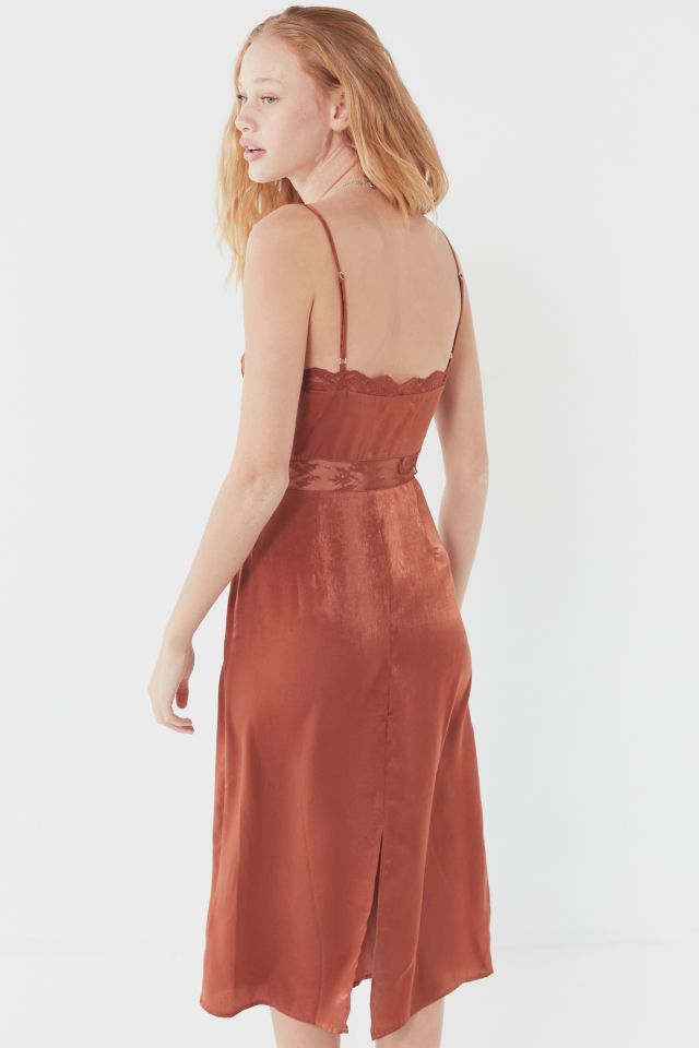 UO Satin Lace Trim Empire Waist Midi Dress Midi dress with