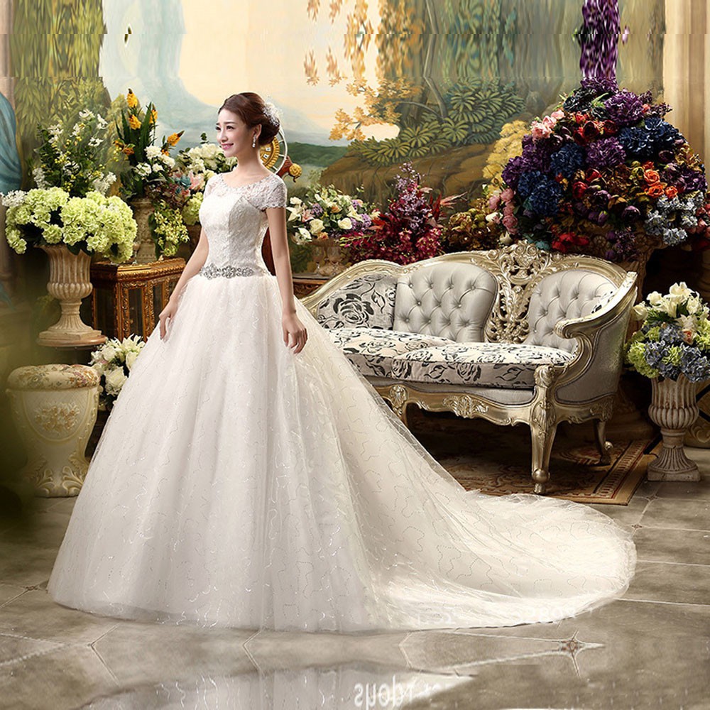 2018 New style long tail wedding dress gown slim big size female formal dress