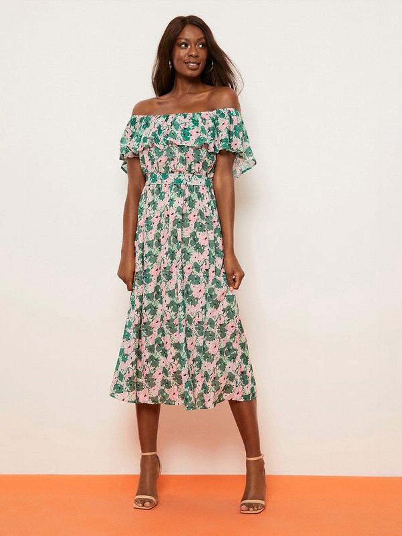 Wallis clearance dresses littlewoods, Wallis Off Shoulder Dress Green Pink Very Ireland clearance