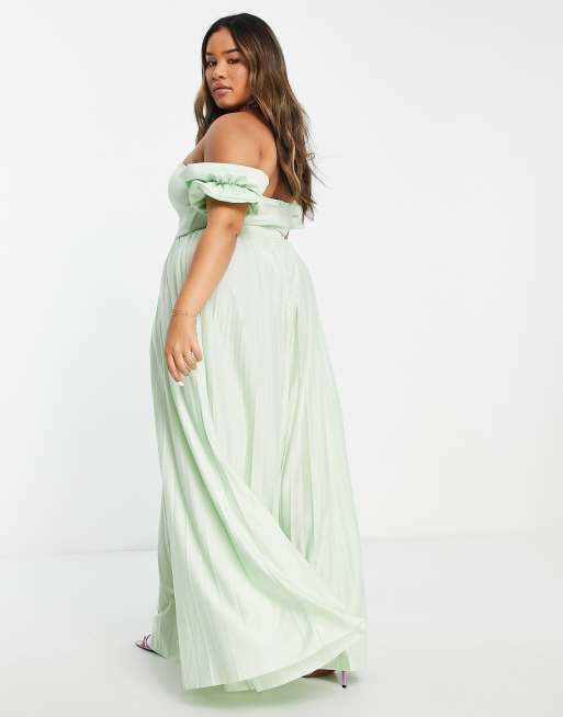 ASOS DESIGN Curve bardot pleated maxi dress in sage LGREEN