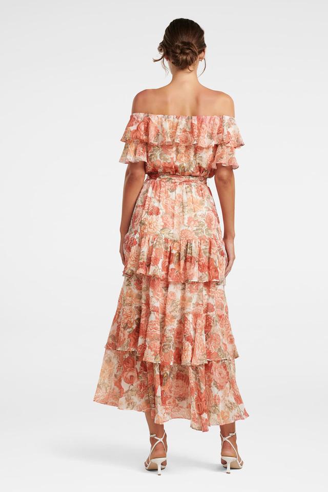 Coral clearance bardot dress, CORAL SATIN BARDOT BOW MAXI DRESS clearance