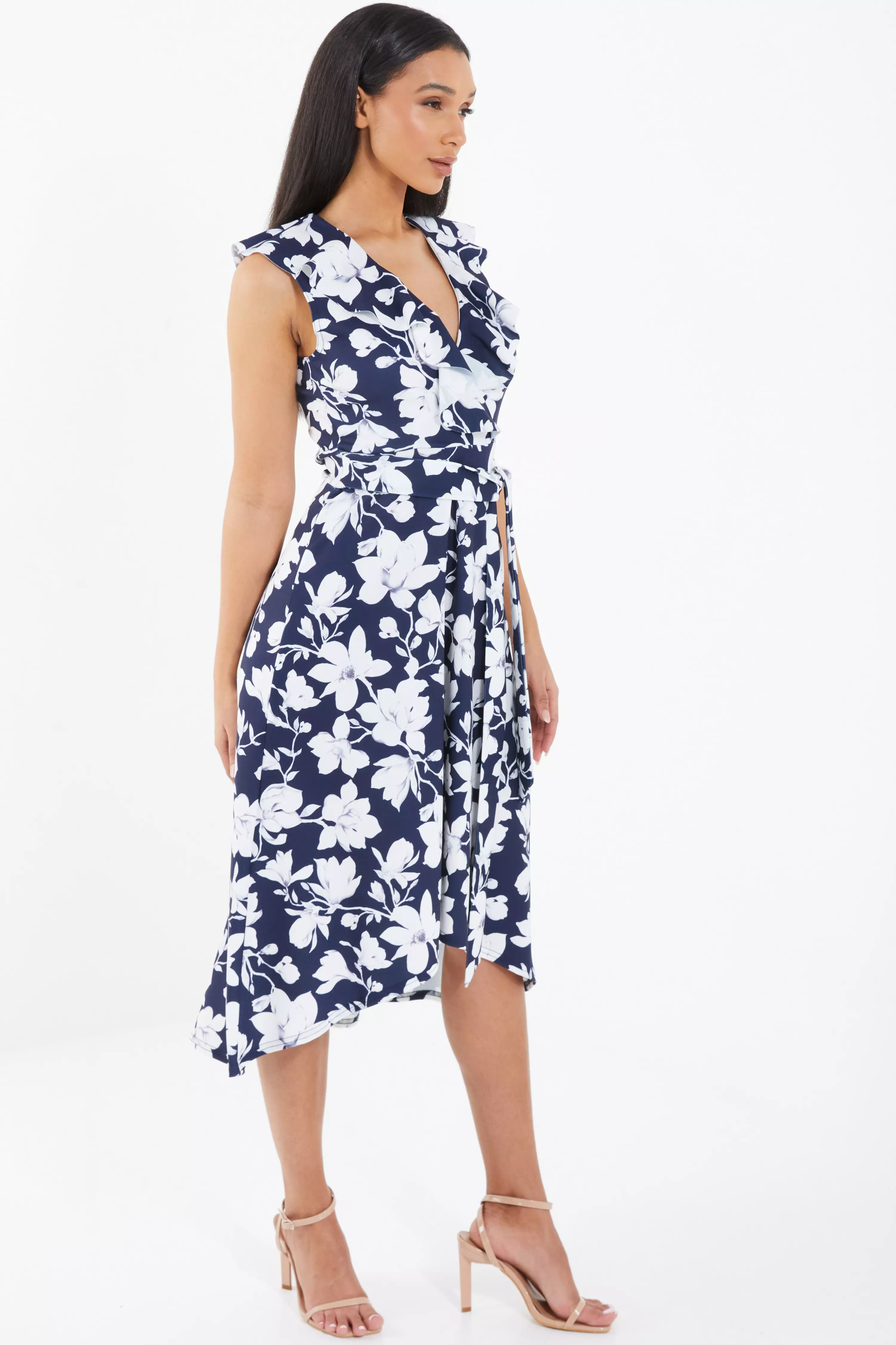 Navy Floral Dip Hem Midi Dress QUIZ Clothing