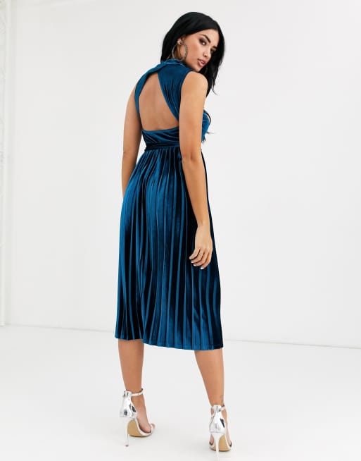 ASOS DESIGN sleeveless high neck pleated open back velvet midi dress