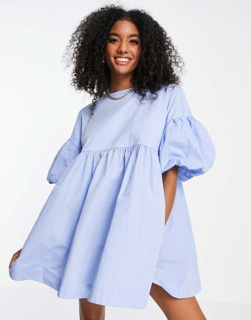 Light blue puff clearance sleeve dress, Mango puff sleeve poplin hybrid dress in baby blue clearance