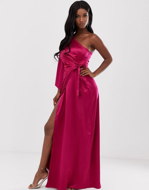 Missguided one shoulder drape maxi dress in raspberry