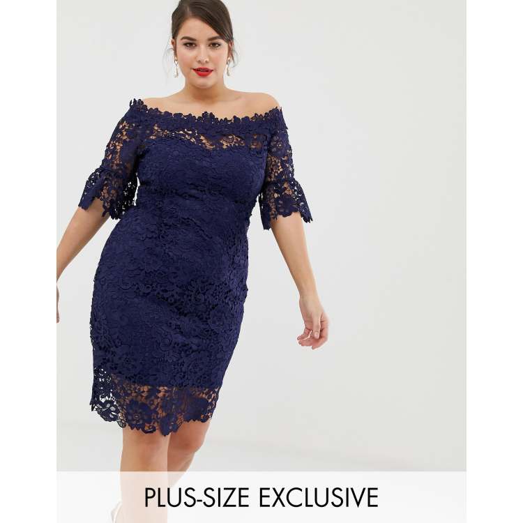 Paper Dolls Plus all over lace bardot dress in navy ASOS