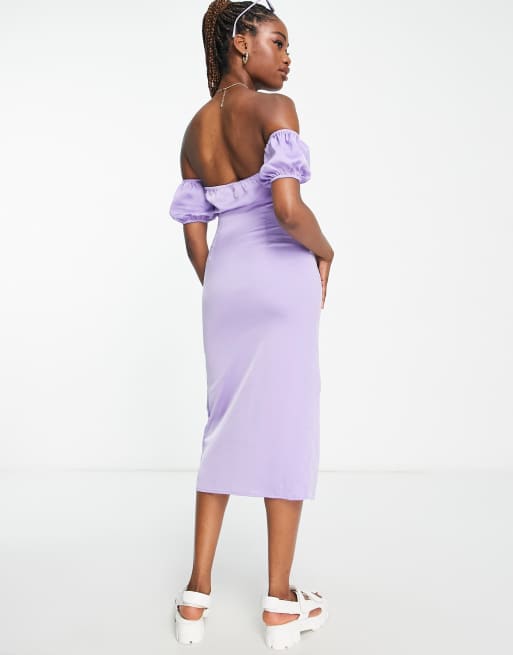 Bardot clearance lilac dress, Announcement Lilac Maternity Bardot Ruched Maxi Dress Club L clearance