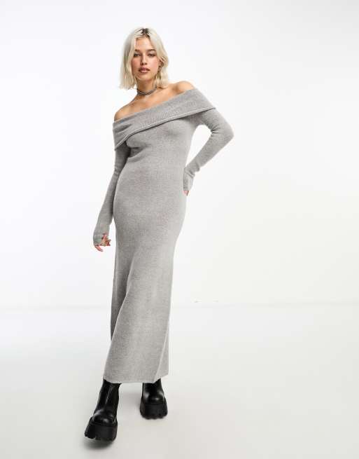 Grey bardot maxi clearance dress, Bardot Style Bridesmaid clearance