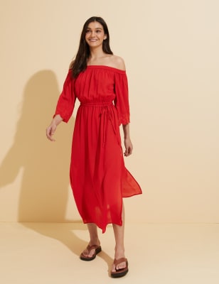 Printed Bardot Midi Beach Dress M S Collection M S
