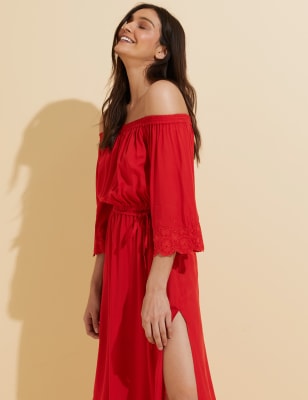 Embroidered Bardot Maxi Waisted Beach Dress M S Collection M S