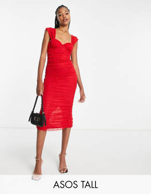 Rare london bardot clearance dress, Rare London mesh corset ruched long sleeve bardot midi dress in black clearance