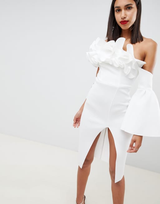 ASOS DESIGN premium frill shoulder one sleeve midi dress