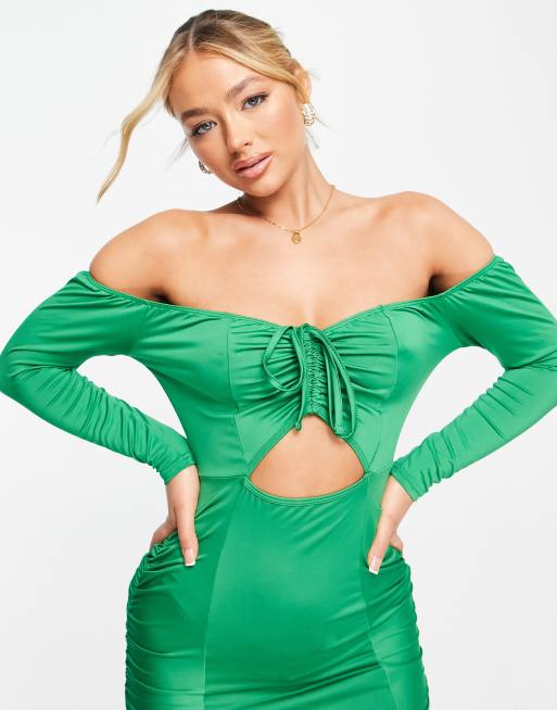 Neon green bardot clearance dress, Unique21 bardot cut out dress in green ASOS clearance
